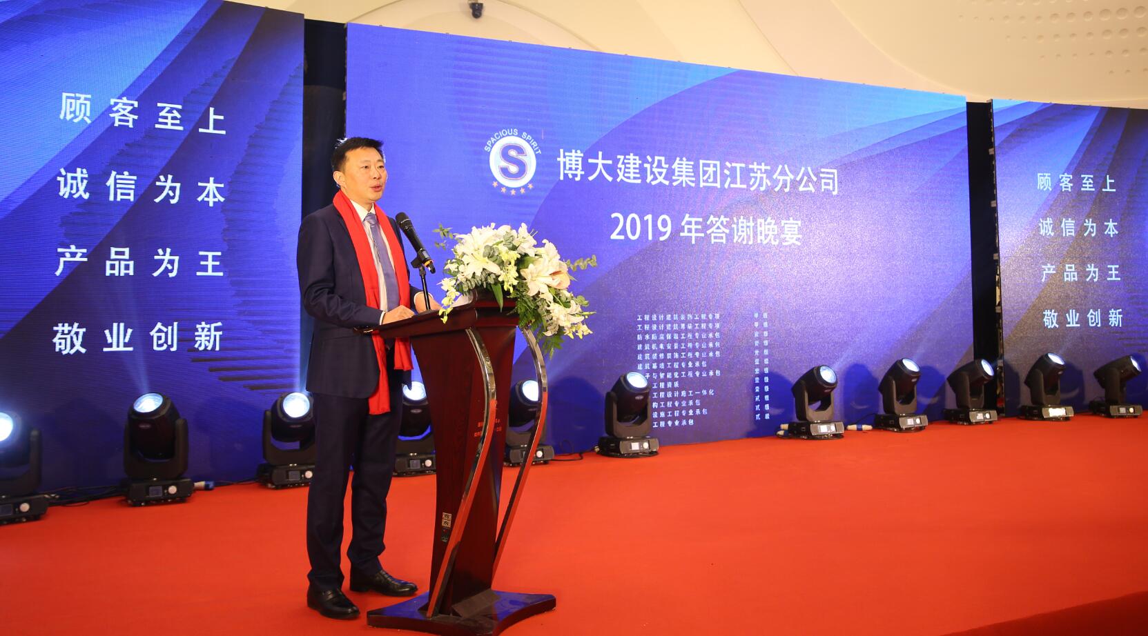 宴會上,董事長徐凱宏代表博大建設集團董事會宣布:任命謝方先生為集團董事、副總裁、江蘇分公司總經理。同時,向行業(yè)介紹了集團總部為江蘇分公司量身定制的五大“特權”政策,全力支持其拓展江蘇市場,期望江蘇分公司成為博大戰(zhàn)略改革的模范試驗區(qū),實現(xiàn)集團與合伙人之間的共贏。
