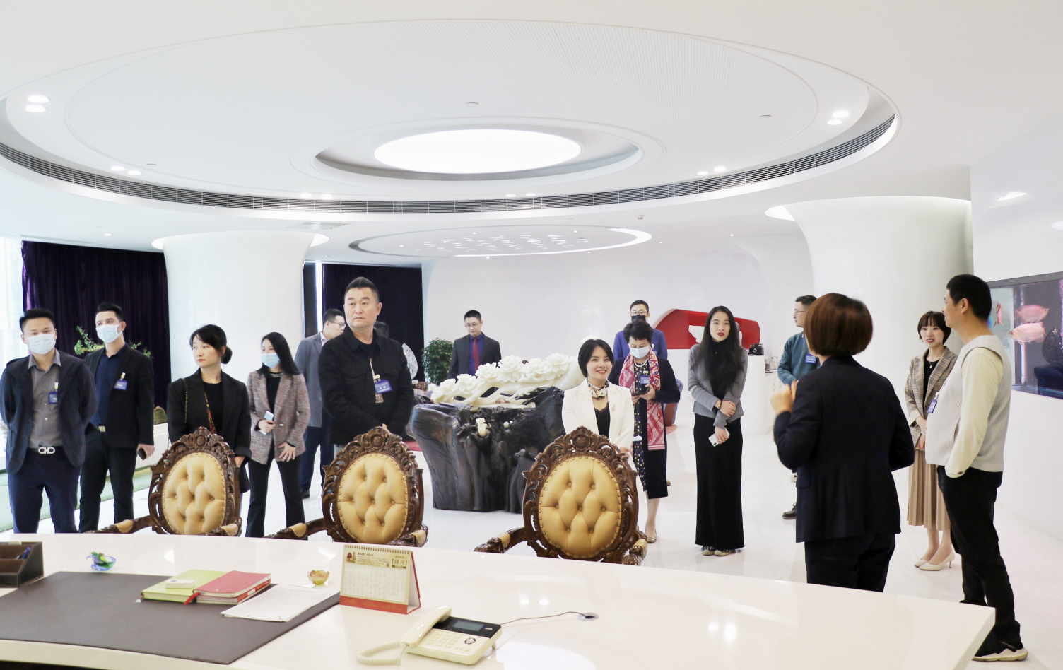 12月8日下午,在行動(dòng)教育深圳分校校長(zhǎng)穆濤、深圳校友會(huì)長(zhǎng)肖衍雄的帶領(lǐng)下,行動(dòng)教育EMBA班企業(yè)家一行40余人蒞臨博大建設(shè)集團(tuán)總部參觀交流,集團(tuán)董事長(zhǎng)洪宇親自接待,副總裁劉子蓮、王君雅、楊丹鑾等領(lǐng)導(dǎo)參加。