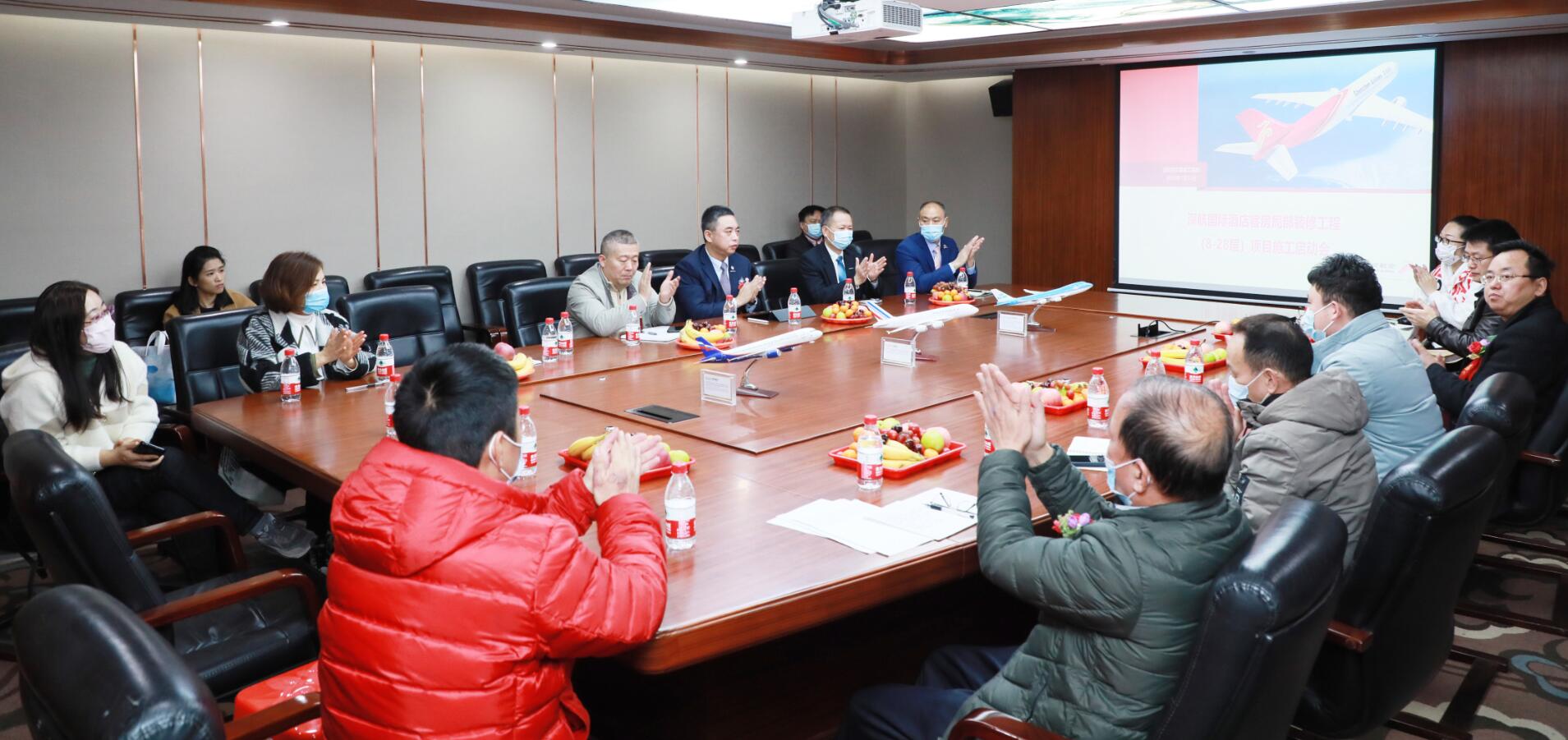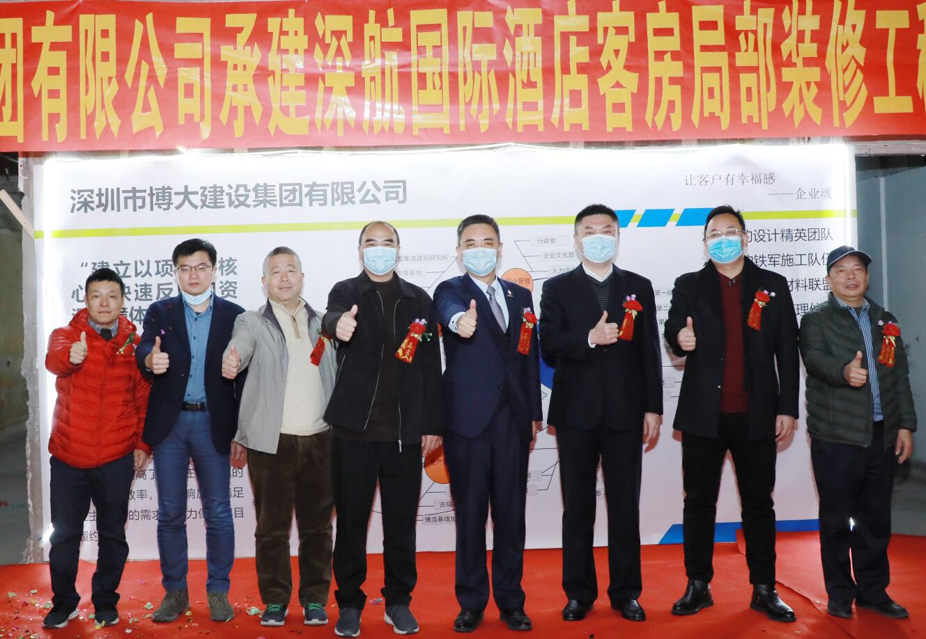 2021年1月14日,在開(kāi)完深航國(guó)際酒店客房局部裝修工程第一次工地會(huì)議后,集團(tuán)副董事長(zhǎng)黃河、第三戰(zhàn)區(qū)總經(jīng)理徐朝華與深航基建處副總經(jīng)理陳新、深航基建處工程管理中心譚波、深航酒店副總經(jīng)理肖強(qiáng)、深圳市中安項(xiàng)目管理有限公司總經(jīng)理趙坤強(qiáng)等一行領(lǐng)導(dǎo)參加了深航國(guó)際酒店開(kāi)工典禮剪彩儀式。