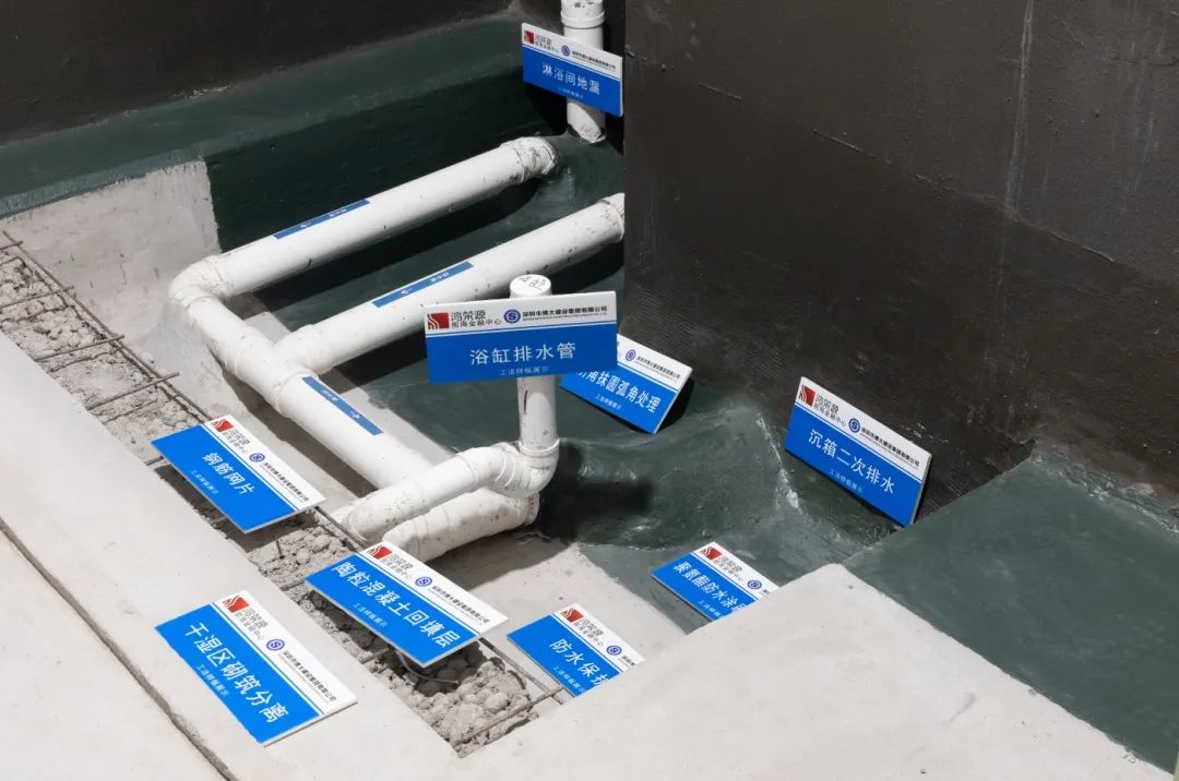 項目部除嚴格管控材料質量外,也嚴格把控過程施工質量,從基層彈線、龍骨排版、線管施工、艾特板安裝、夾板施工、防水施工等基層施工,每一道工序都嚴格按照標準、技術要求、工法樣板進行施工。